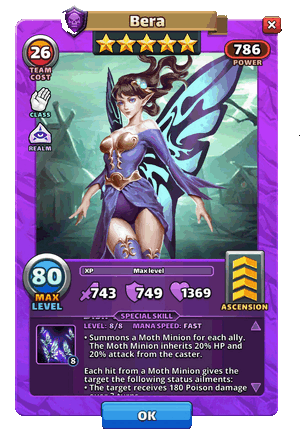 Герой бера имеет 5 звёзд, призывает мотылька для каждого союзника.